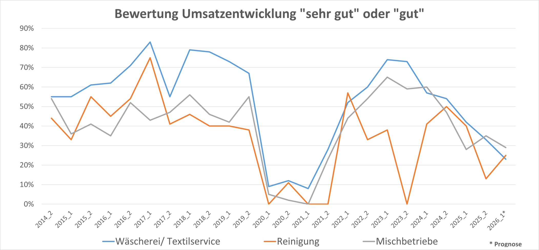 Die prognostizierte Umsatzentwicklung für das erste Halbjahr 2026 fällt nochmals verhaltener aus. Dabei handelt es sich um eine Premiere: Erstmals fällt die Prognose insgesamt negativer aus als die aktuelle Bewertung der Lage.