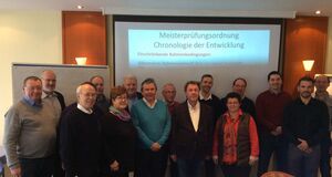 Herr Rolf Rehbold vom Forschungsinstitut für Berufsbildung im Handwerk der Universität zu Köln sowie Udo Nagelschmidt, Leiter des TBZ in Rheine und Vorsitzender des DTV Ausschusses für Aus- und Weiterbildung, stellten den Anwesenden den Überarbeitungsstand der Meisterprüfungsordnung vor. Bereits seit 2008 sind hier die Arbeiten im Gange und sollen nun zumindest von Seiten des DTV demnächst abgeschlossen sein. Ein großes Problem waren unter anderem die engen Rahmenvorgaben von Seiten der Bundesministerien, des Zentralverbandes des Deutschen Handwerks (ZDH) sowie der Sozialpartner, die den Entwurf in der nächsten Phase zur Prüfung vorgelegt bekommen.