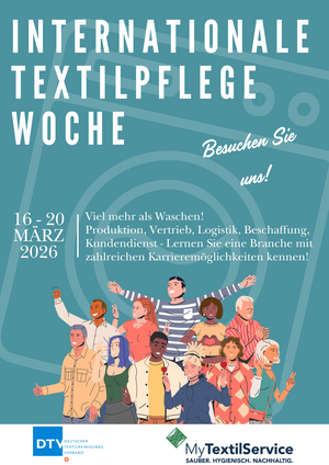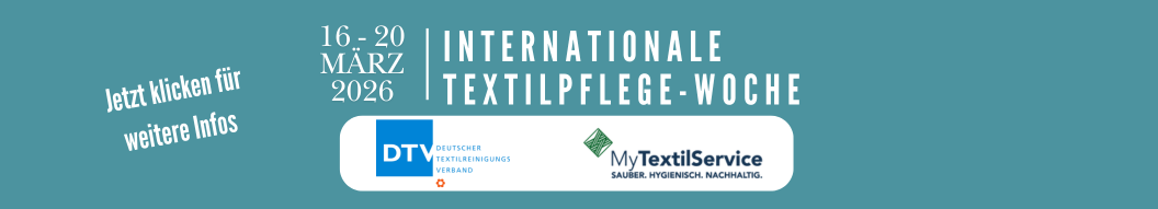 Gemeinsam mit europäischen Partnerverbänden veranstaltet der DTV vom 16. bis 20. März 2026 die „Internationale Textilpflege-Woche“. Die Woche wurde in den letzten Jahren bereits erfolgreich u.a. in Frankreich, Belgien, Tschechien und dem Vereinigten Königreich durchgeführt.
